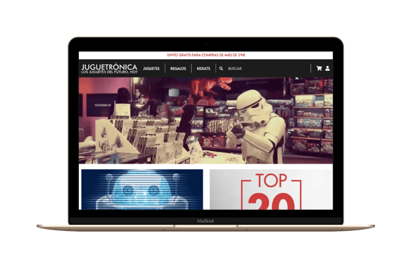 Juguetronica es una tienda online que pudo verse tentada por diversificar su oferta y ofrecer juguetes de todo tipo. Sin embargo, ha decidido especializarse en los juguetes tecnológicos. De esta forma, tendrá un público menos numeroso pero más fidelizado. Además, en el menú superior de la página de inicio incluyen la pestaña Kidults para dejar claro que también tienen productos pensados para adultos.