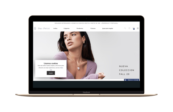 - Si el principal valor de tus productos se encuentra en su diseño, será una buena idea cuidar el diseño de la web y dar más protagonismo a las imágenes, como hace la tienda de joyería Oui Petit.