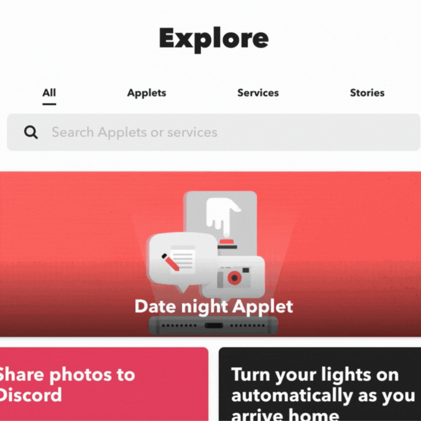 Los Applets son cosas específicas que pueden ocurrir cuando conectas servicios. Sin importar el tipo de dispositivo, puedes crear eventos en tu calendario a través de Alexa o Google Assitant, usar el clima para determinar la temperatura en su hogar, o encender su sistema de seguridad cuando sale de su hogar y usar su voz para encender un dispositivo. Hay toneladas de Applets para elegir; IFTTT dice que hay 18 millones de usuarios que ejecutan más de mil millones de Applets al mes.