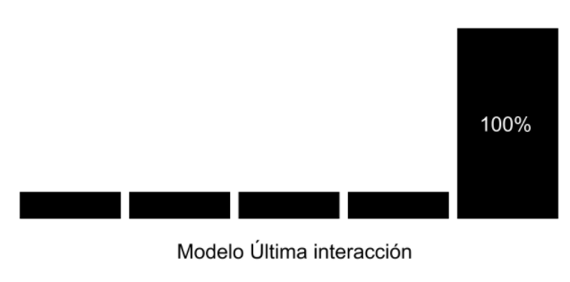 Atribuye el 100% de la conversión al último canal. Es simplista y poco útil, ya que ignora las interacciones previas. Muchas herramientas lo usan por defecto, pero es un modelo a evitar.