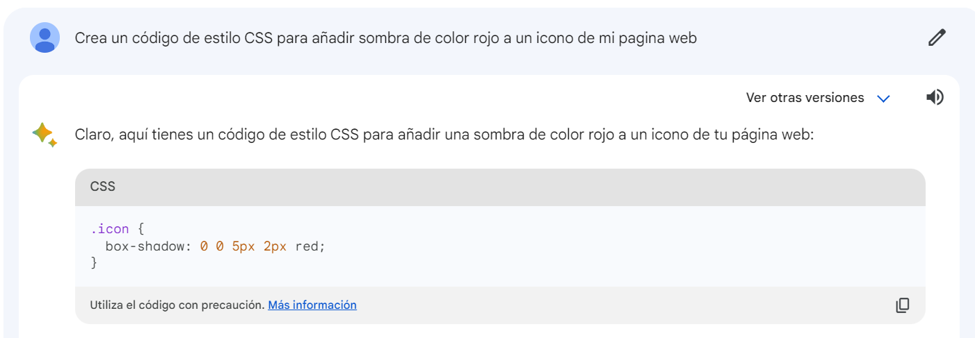 - Escuchando las respuestas. Podemos escribir una indicación al chat de inteligencia artificial y seleccionar el icono de sonido para escuchar las respuestas de Bard. Es especialmente útil si estás aprendiendo un idioma y quieres saber la pronunciación de una palabra o escuchar un poema, por ejemplo.
